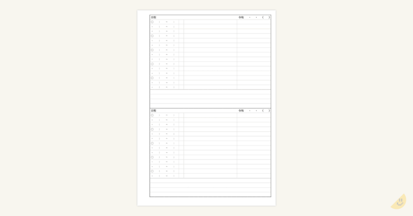 - 1 ページに 2 日分を記録できます。